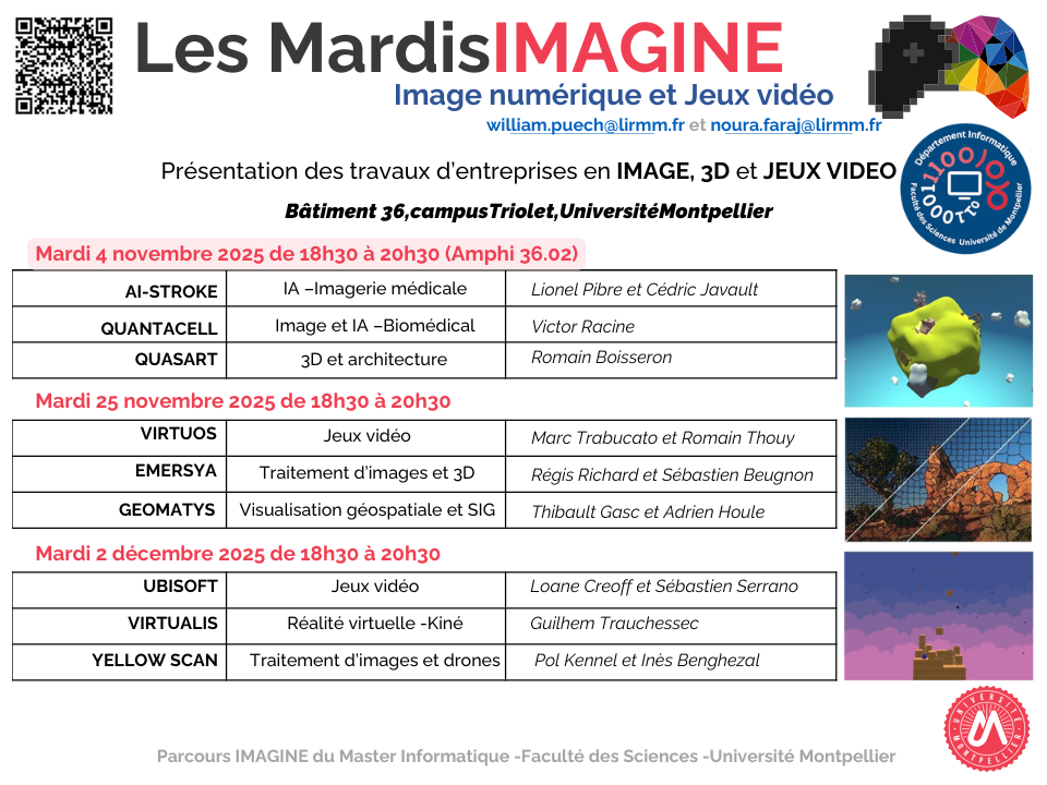 Cet évènement sera l’occasion de découvrir des travaux dans les domaines de l’image , de la 3D et du jeu vidéo, réalisés par les entreprises participantes.