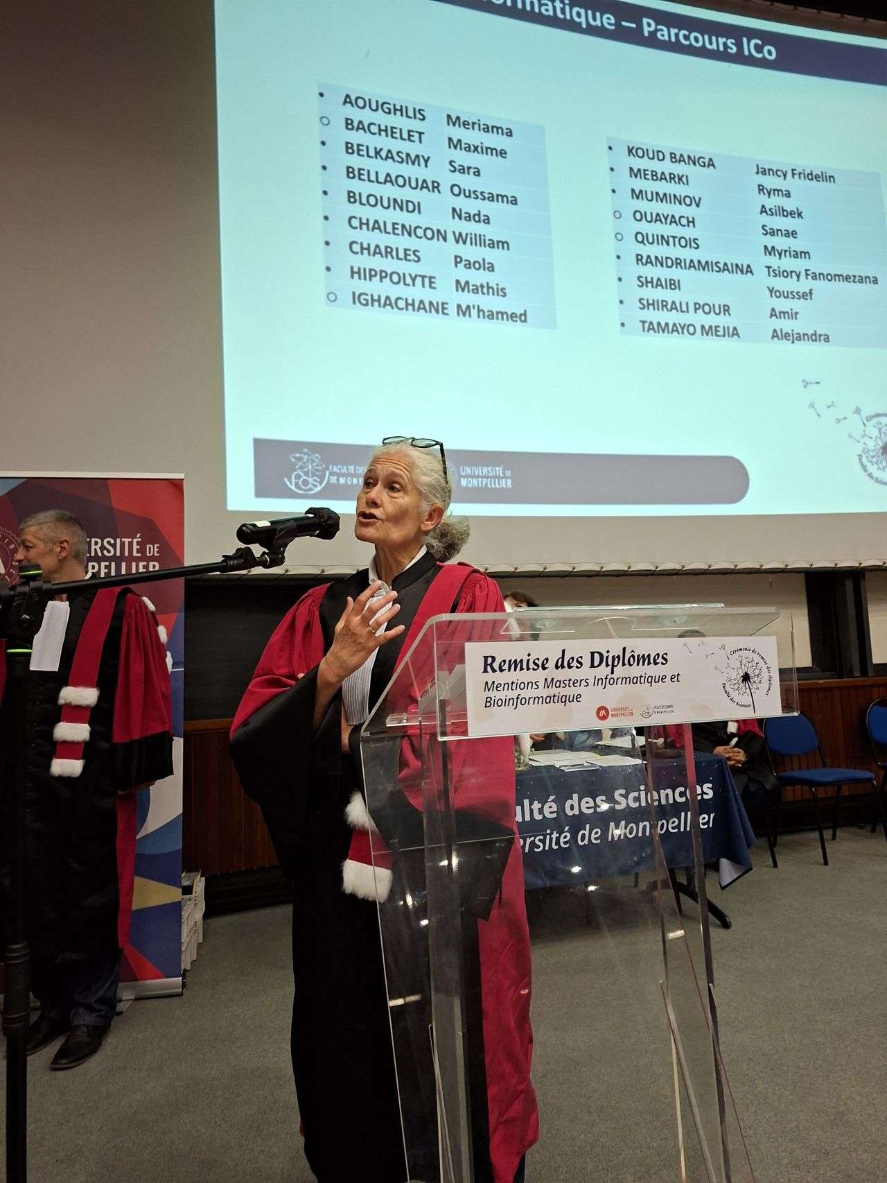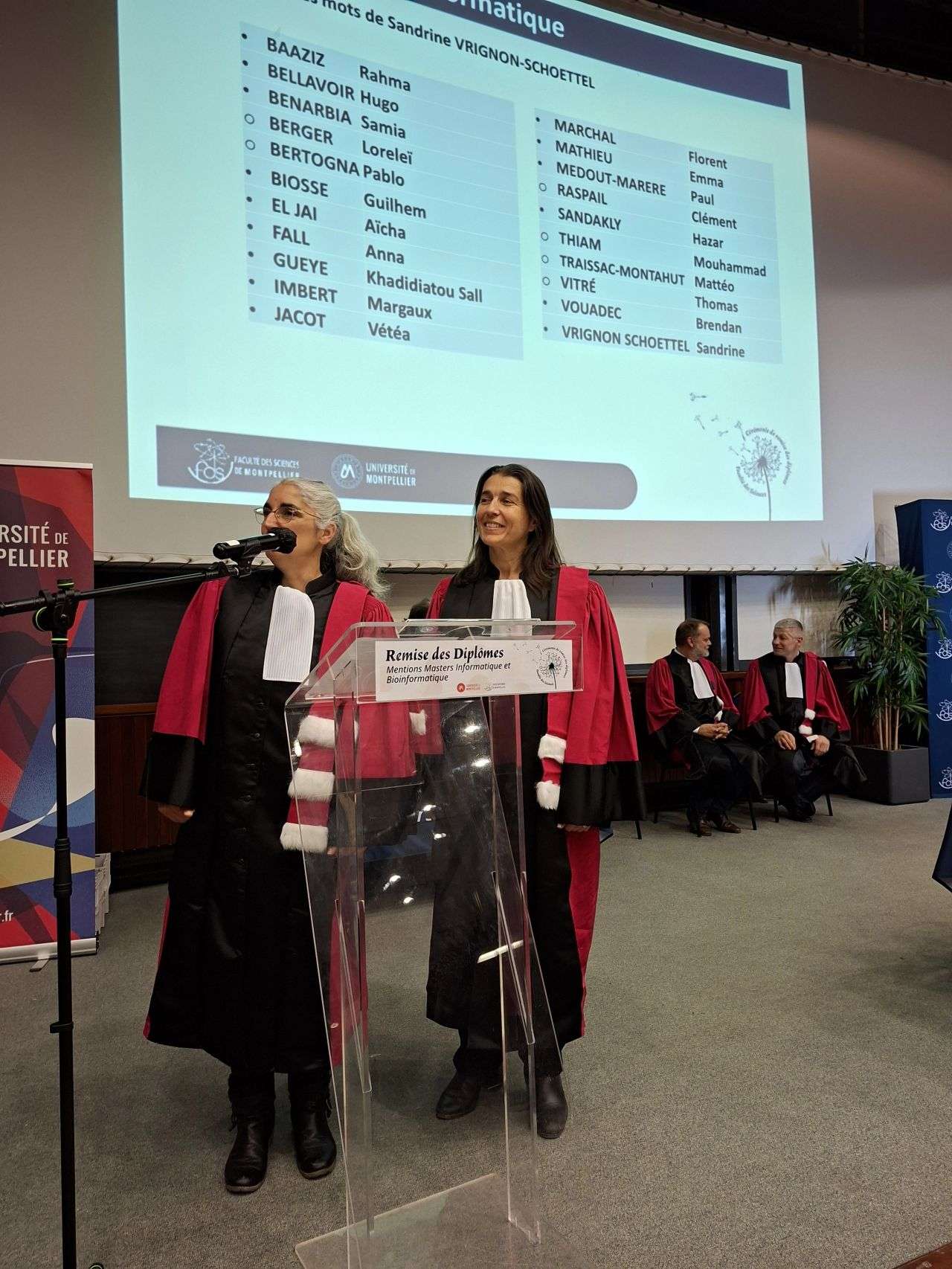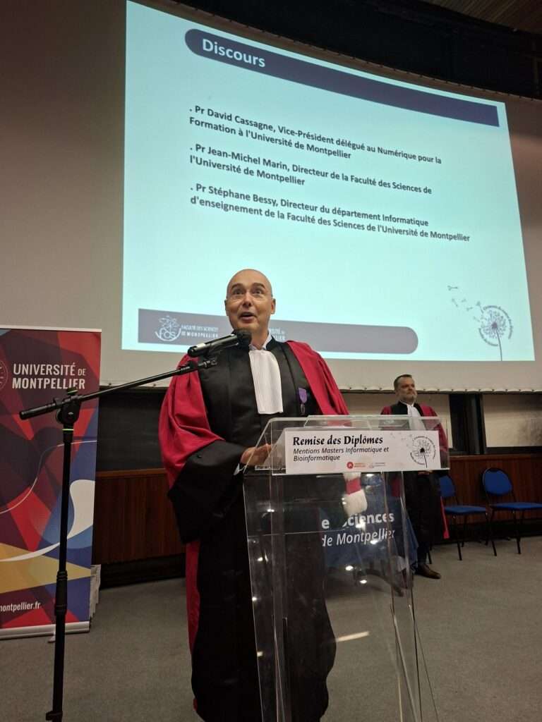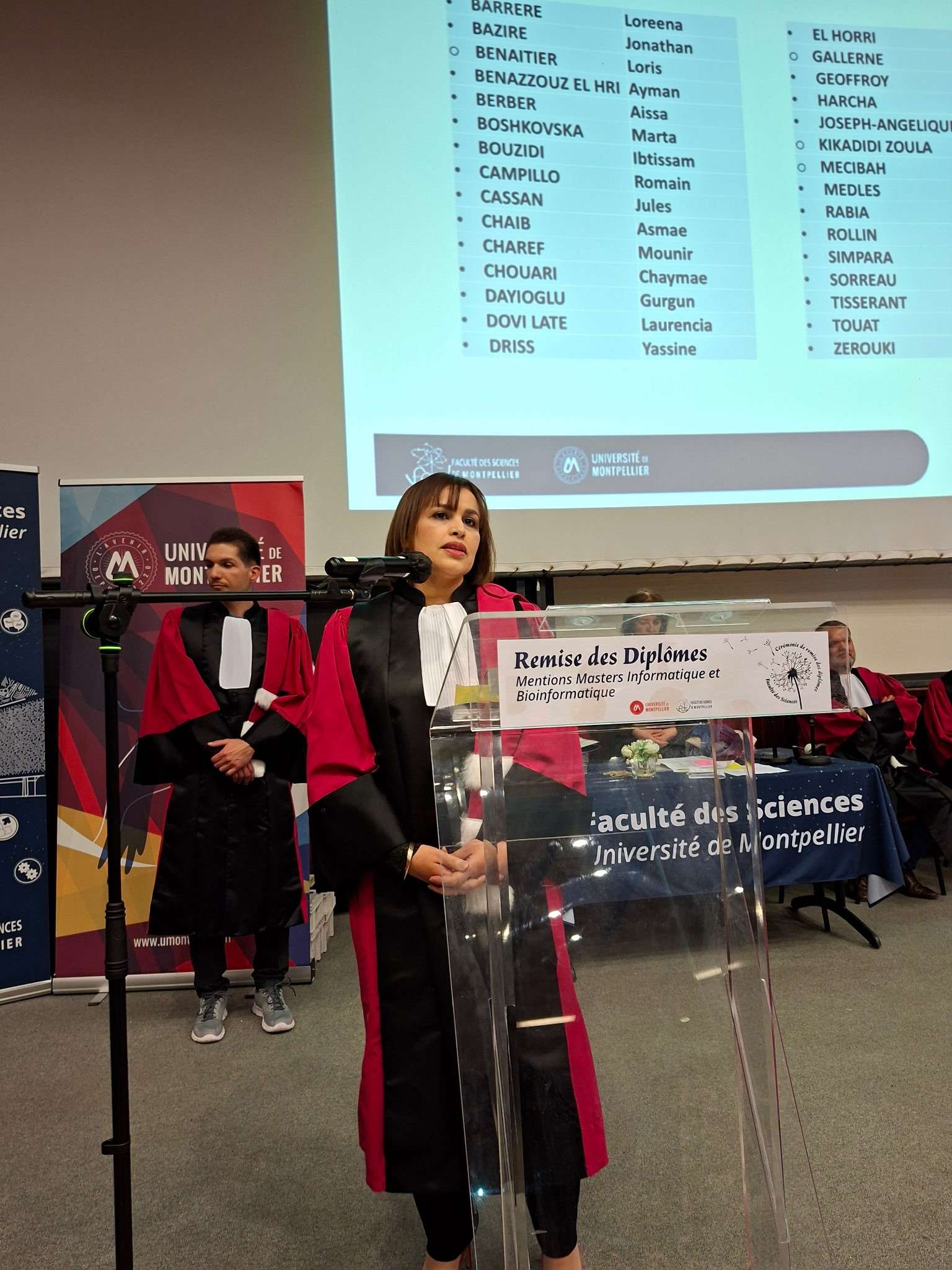 Les responsables de mentions et de parcours ont ensuite chaleureusement félicité les nouveaux diplômés du Master BIOINFO, des parcours Génie Logiciel, Intelligence Artificielle et Sciences des données, Intégration des Compétences, et Imagine