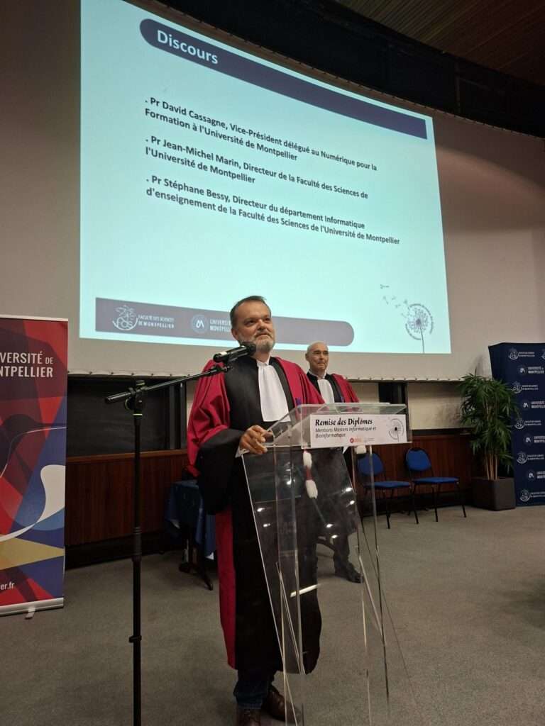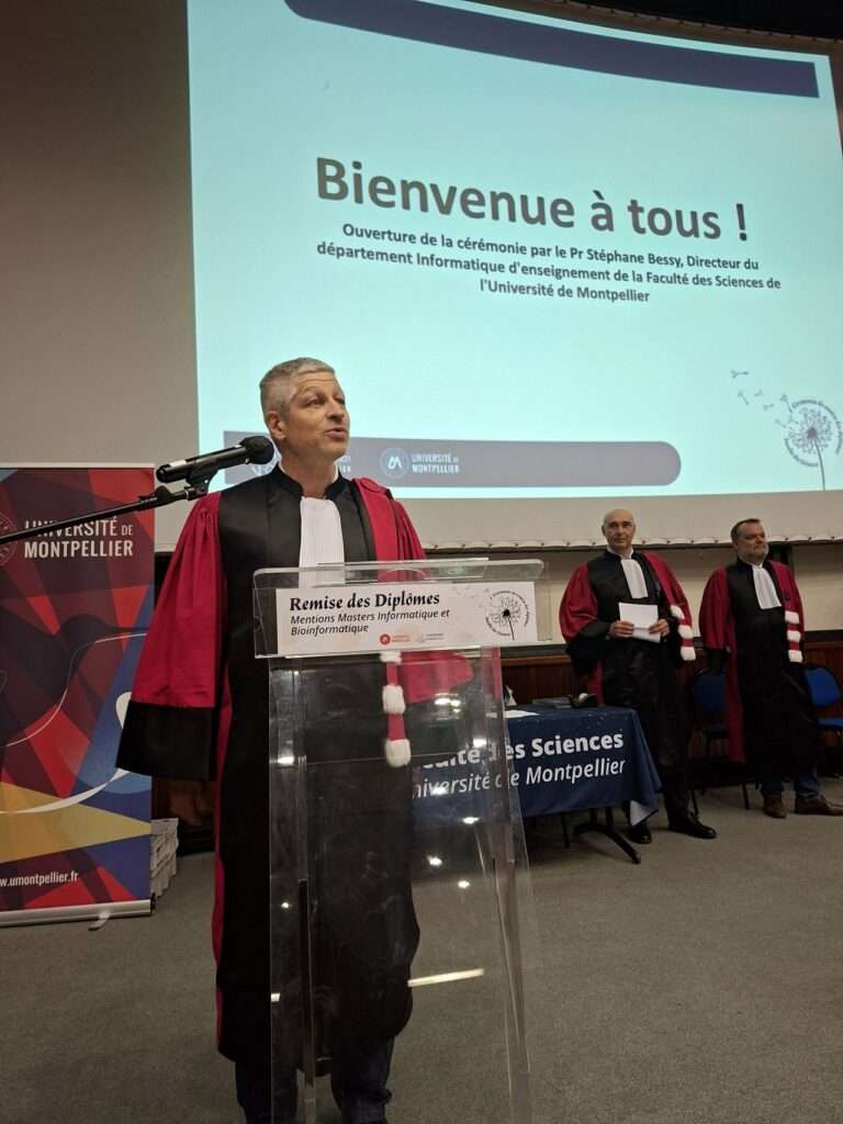 Après le discours de bienvenue du directeur du département INFO, la cérémonie a débuté par les discours du Vice-Président délégué au Numérique pour la Formation, du Directeur de la Faculté des Sciences, et du Directeur du Département INFO.